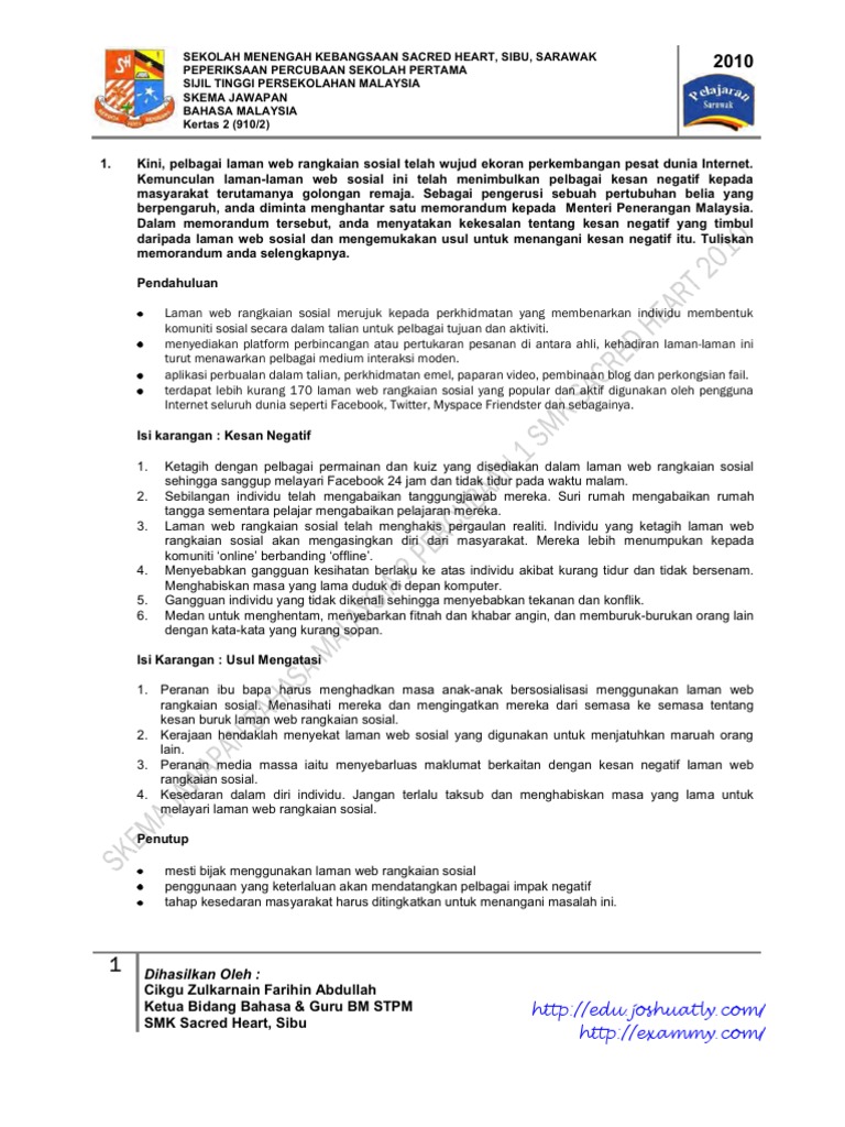 Skema Percubaan Sarawak 2010 Stpm Bahasa Malaysia K2 Pdf